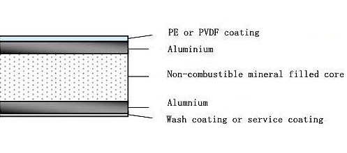 The outer aluminium sheet and inner fire resistant polyethylene makes the aluminium composite panel has an excellent fireproof performance. The fireproof composite material meets the GB8624 B1 standard and is fire retardant stratified, smoke less and no harmful gas.